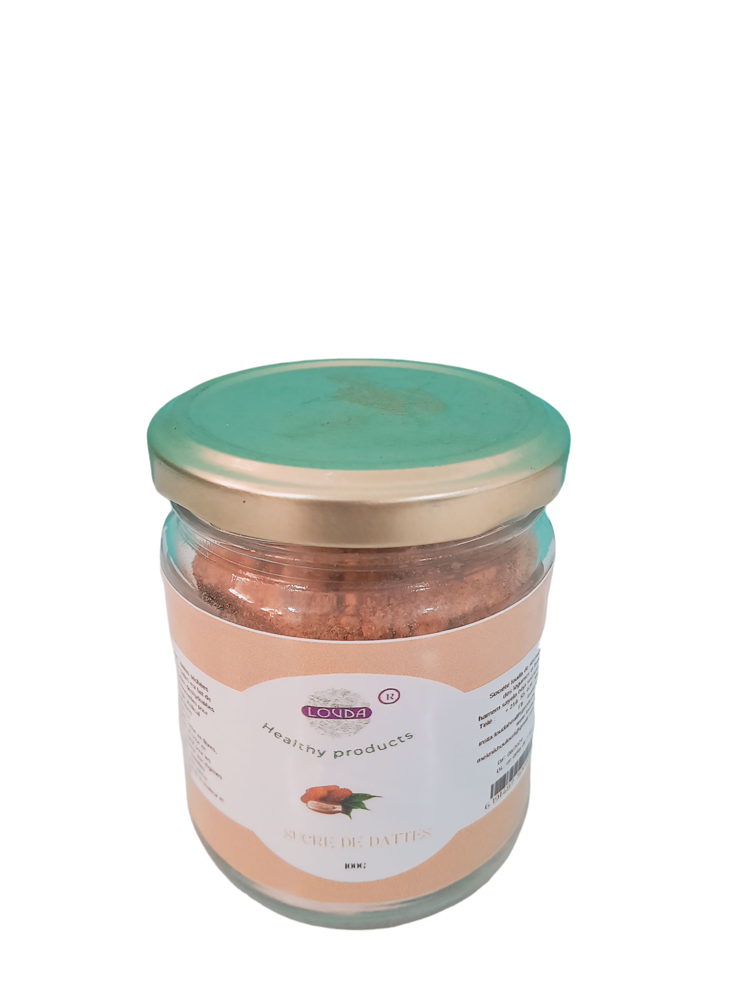 Le sucre de dattes regorge de nutriments riche en fibres, le sucre de dattes est fait de 100% de dattes déshydratées .finement broyées, est une alternative naturelle et saine au sucre blanc. idéal pour agrémenter thé, café ou pâtisserie .